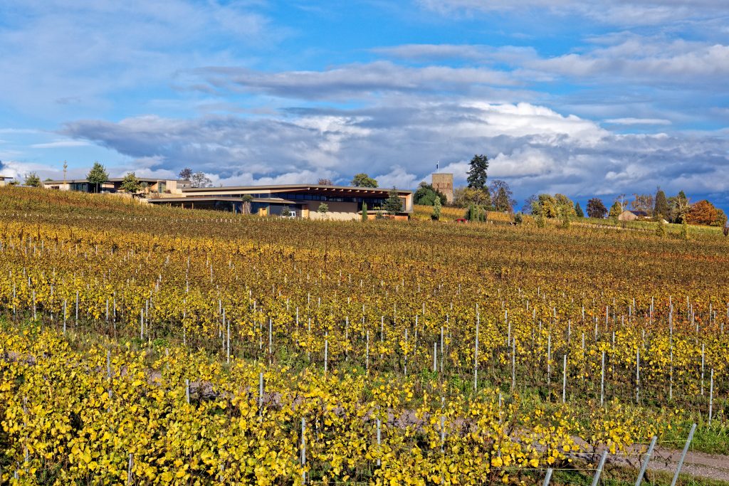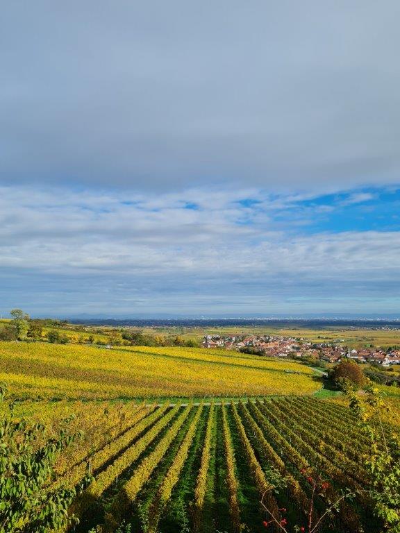 Der Nussriegel liegt in unmittelbarer Nachbarschaft zur Grand Cru Lage Weilberg. Hier findet sich tonhaltiger Lehm und Buntsandstein, der kräftige und harmonische Weine hervorbringt.