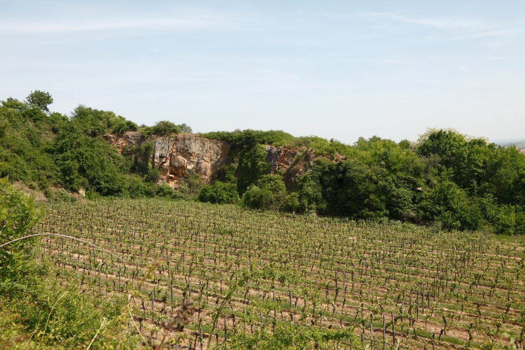 Der Leistadter Felsenberg liegt im Naturschutzgebiet Berntal, umschlossen von Kalksteinmauern. Die Reben stehen in einer nach Süden ausgerichteten Hanglage, auf einem natürlichen Felsband aus tertiärem Kalkstein. Wir haben den Weinberg 2011 komplett rekultiviert und mit Burgundischen Pinot Noir-Reben neu bestockt.